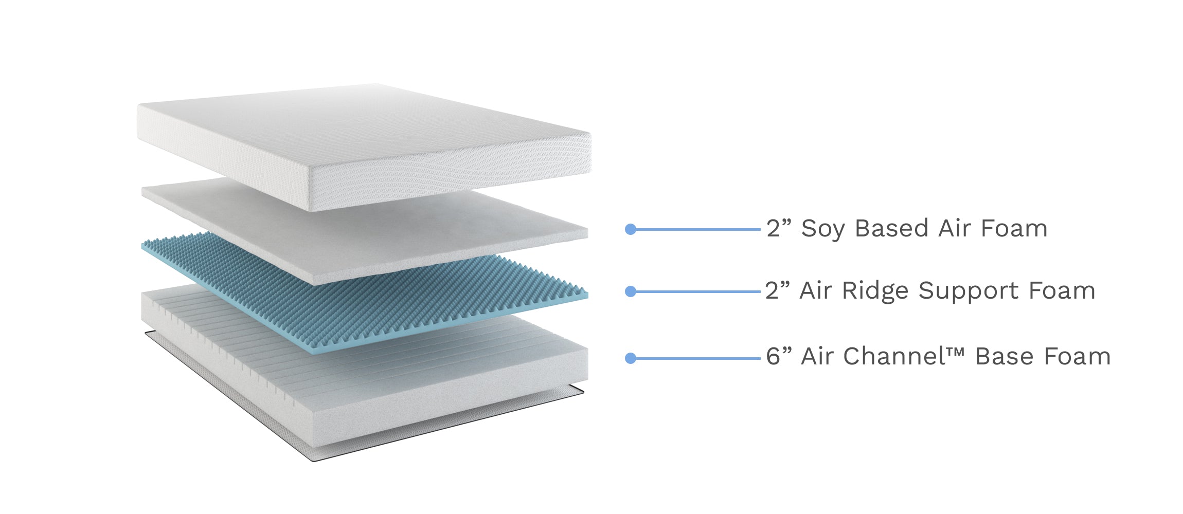 2" Bio-Based Air Foam: Open-celled natural soy memory foam provides breathability for a temperature-neutral sleep. Soy is a renewable resource.