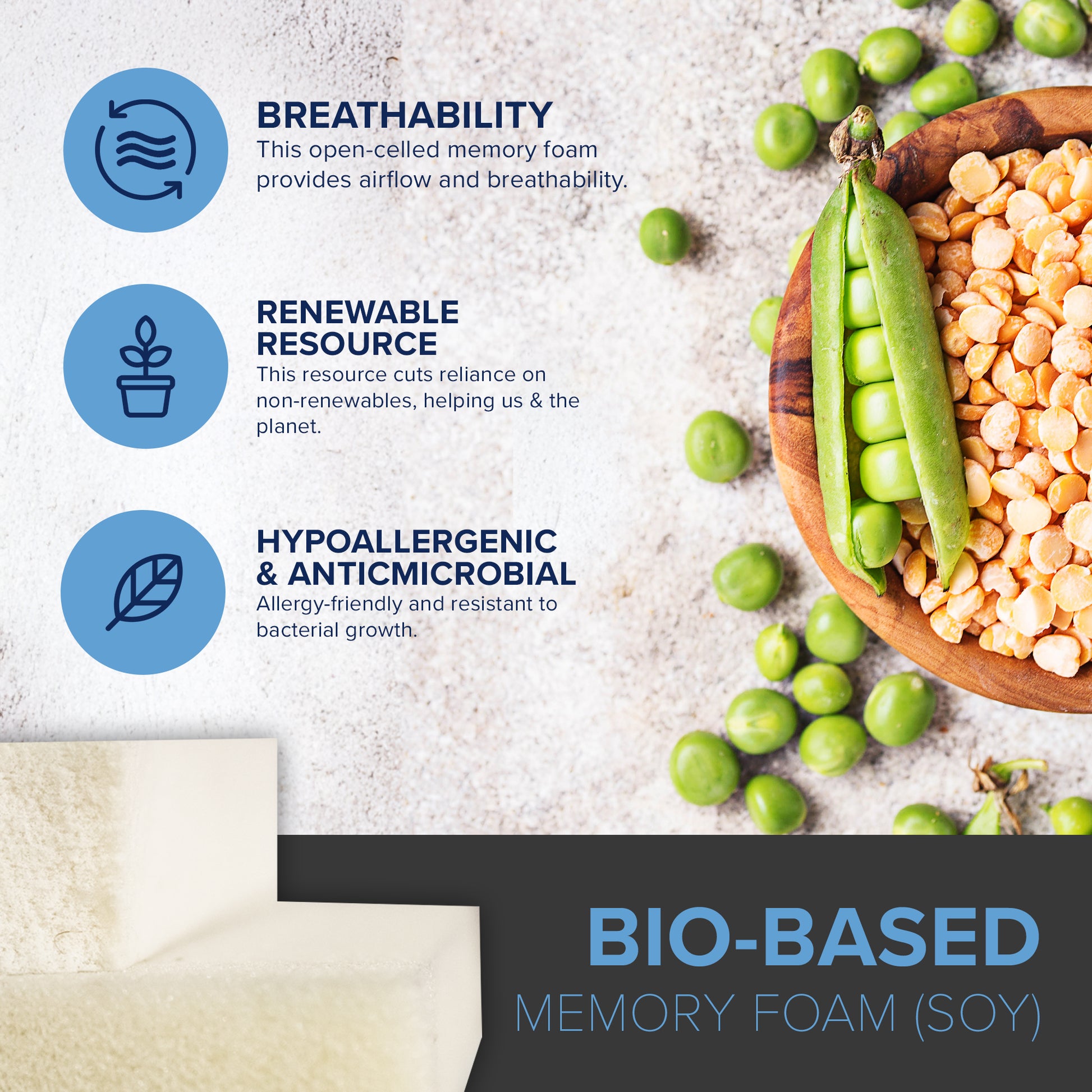 natural soy memory foam provides breathability for temperature-neutral sleep. Soy is a renewable resource.